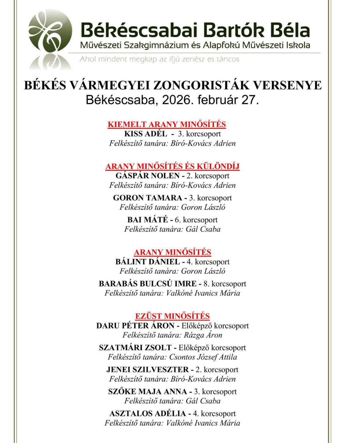 BÉKÉSCSABAI BARTÓK BÉLA MŰVÉSZETI SZAKGIMNÁZIUM ÉS ALAPFOKÚ MŰVÉSZETI ISKOLA